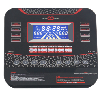 Показания консоли скорость / расстояние / время / наклон / частота пульса / калории / программы